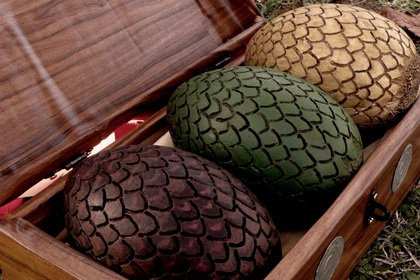 В сериале «Игра престолов» героине Дейенерис Таргариен по сюжету, во время свадьбы подарили ценный подарок - три драконьих яйца. Как выяснилось, это не просто поделка из папье-маше, а нечто ценное. По крайней мере, люди готовы отдавать за них огромные деньги. Эмилия Кларк, которая собственно сыграла Таргариену, утверждает, что ей такие яички не по карману. Но всё же, нашёлся человек с достаточным количеством денег, чтобы их выкупить, это рэпер Jay Z, который решил порадовать таким яичком свою супругу, певицу Бейонсе.