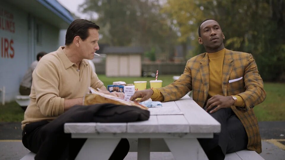 «Зелёная книга» появилась в 2018 году и получила «Оскар» в номинации «Лучший фильм». Мортенсен там был в роли простака, что работает клубным вышибалой. Он нанялся водителем к высококультурному негру, музыканту Дону Ширли. Вместе они путешествуют по самой расисткой местности США - Югу. Поначалу и сам Тони ведёт себя как расист, но постепенно он начинает уважать своего начальника.
